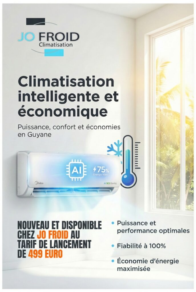 Jo Froid Climatisation en Guyane Votre expert local en climatisation, froid et service après-vente Implantée en Guyane, Jo Froid Climatisation accompagne les particuliers, entreprises et collectivités pour tous leurs besoins en installation de climatisation, entretien, maintenance préventive et dépannage rapide. Notre priorité : vous garantir confort, performance énergétique et tranquillité d’esprit, même après l’installation. 🌬️ … Continuer la lecture Jo Froid Climatisation en Guyane | Installation, entretien & SAV